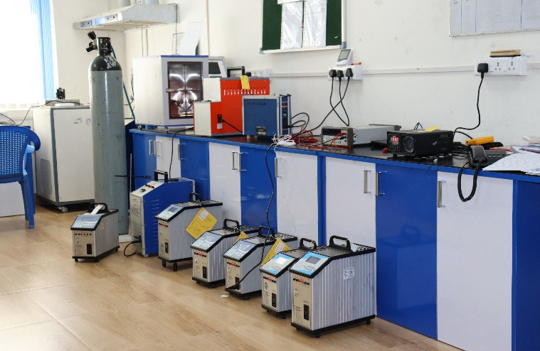 - Equipped with high accuracy standards including standard SPRTs/Thermocouples, Liquid Baths (Methanol), array of Dry Block Temperature Calibrators, 6½ DMMs, Standard Pyrometers, Black body Sources etc.,
